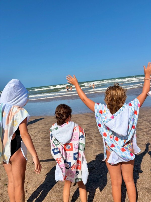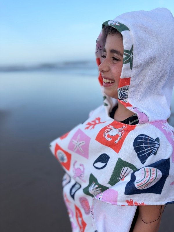 Hermoso y practico ponchito de toalla estampado.